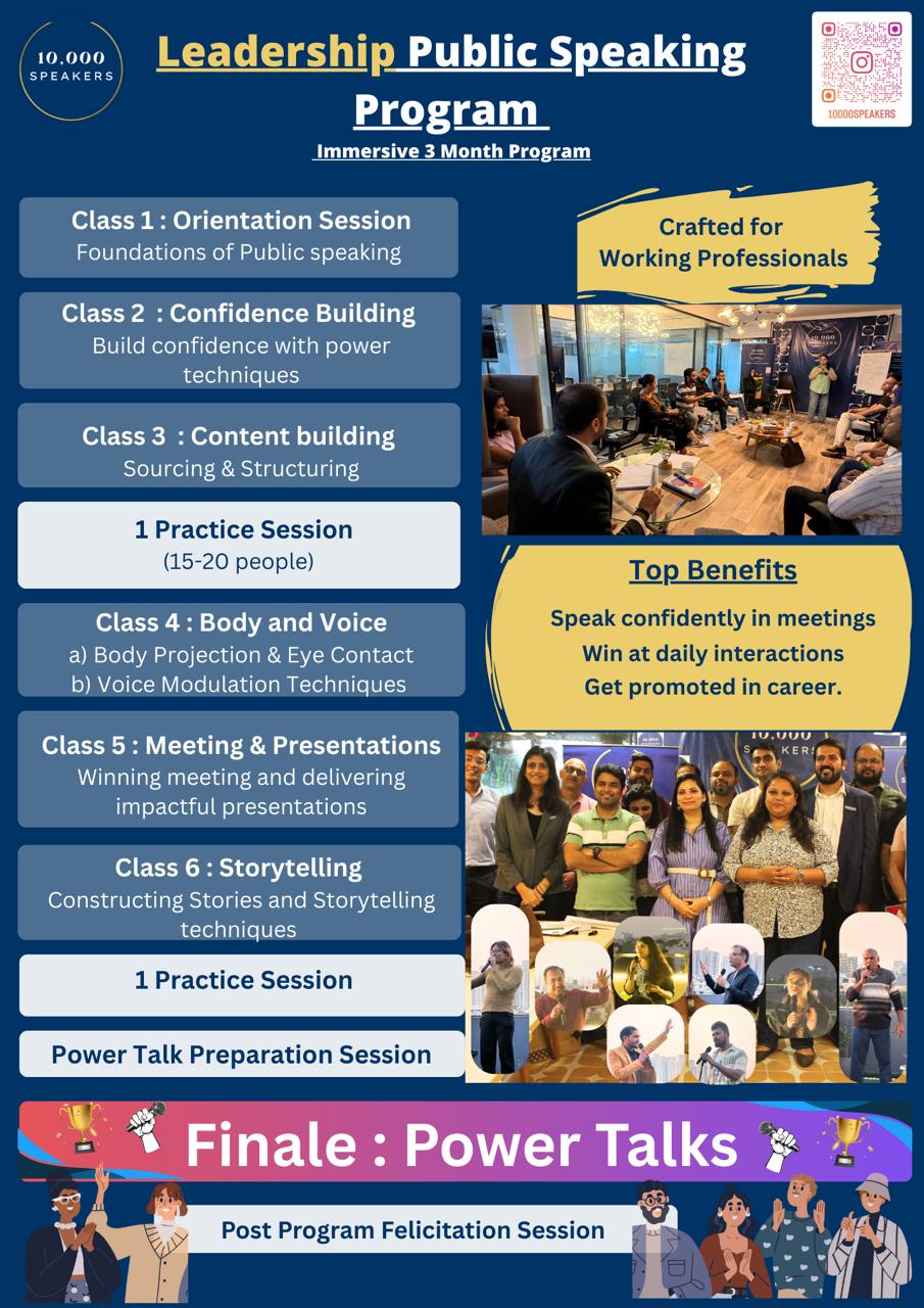 This is a professionals program for working Professions in Senior and Middle Management who aspirre to grow in their career with better speaking skills !